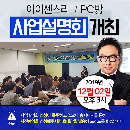 PC방창업대출 최대 3억까지 가능한 아이센스리그PC방! 12월 사업설명회 마지막 진행!