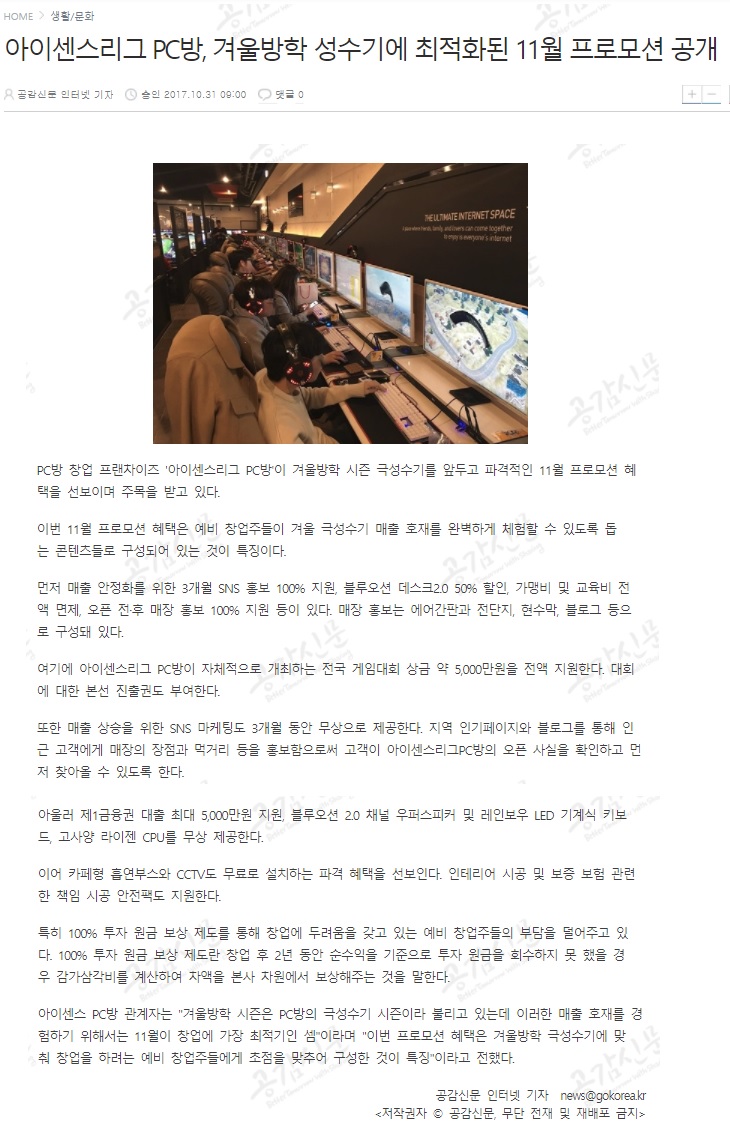 아이센스리그PC방, 가맹점 마케팅 무상 지원 혜택 주목