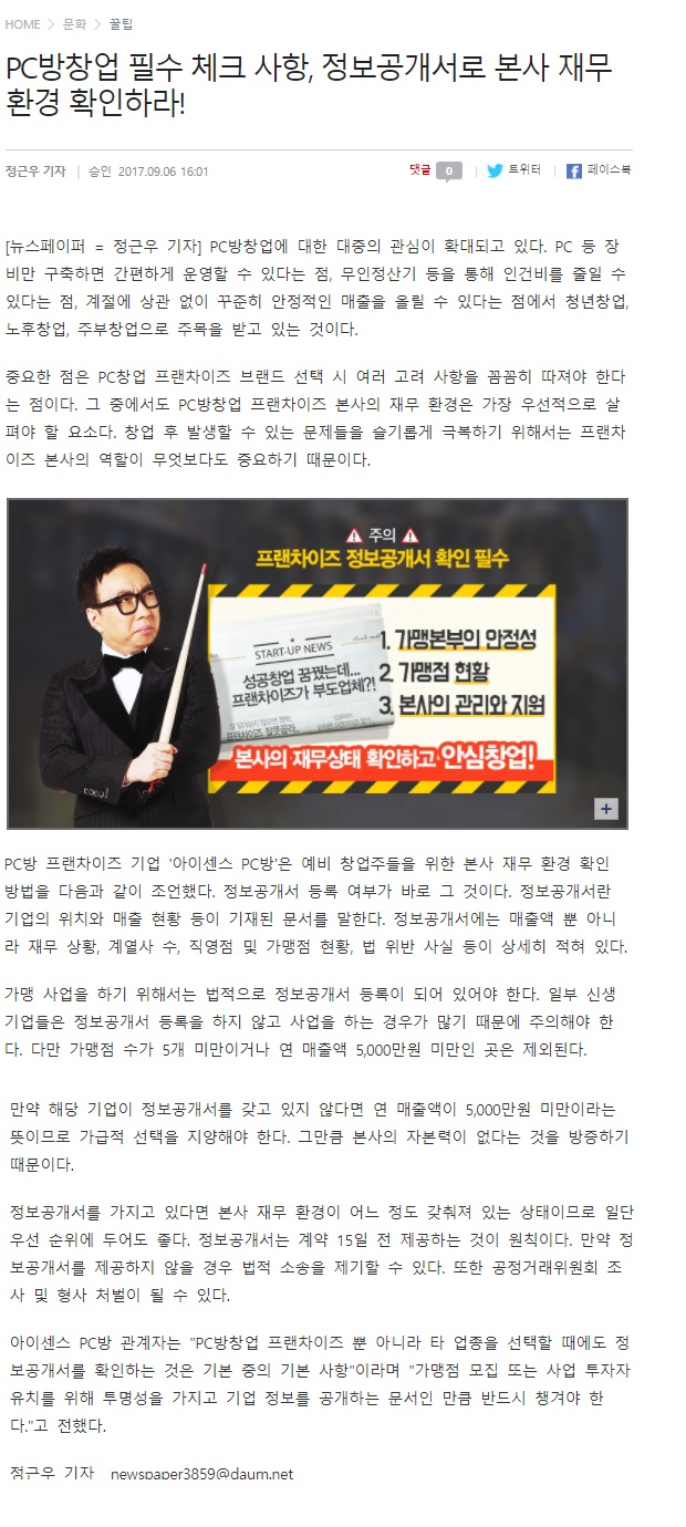 PC방창업 필수 체크 사항, 정보공개서로 본사 재무환경 확인하라!