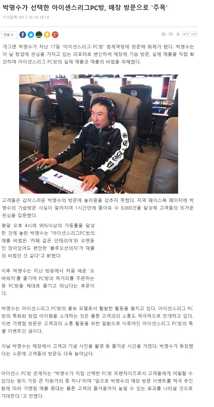 박명수가 선택한 아이센스리그PC방, 매장 방문으로 '주목'
