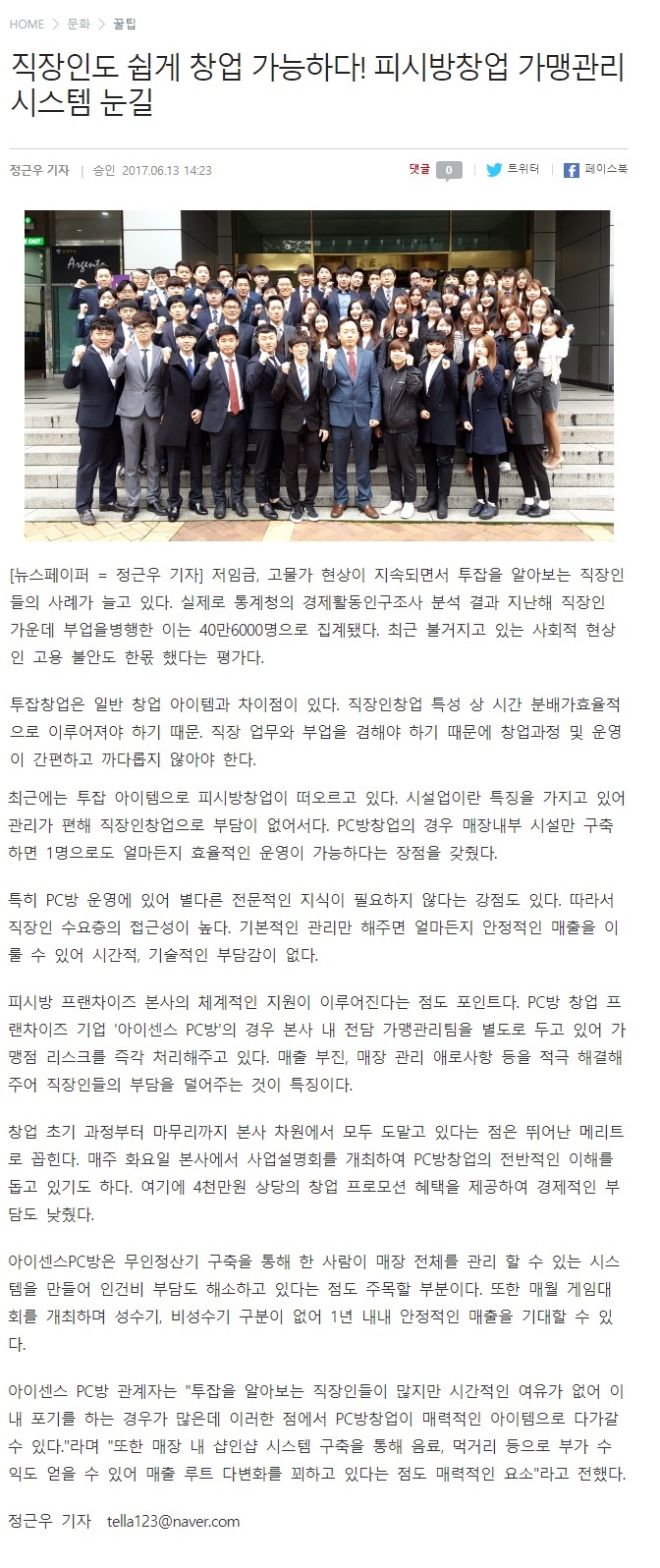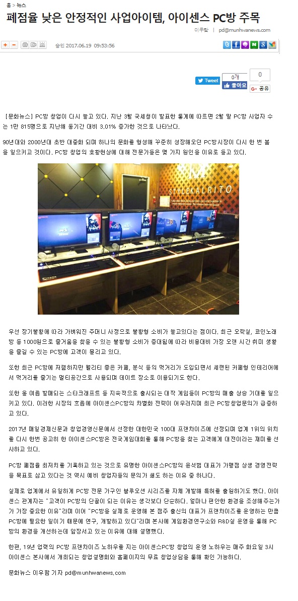 여름 성수기 창업 붐, 아이센스PC방, 5000만원 지원 7월 창업지원이벤트 화제