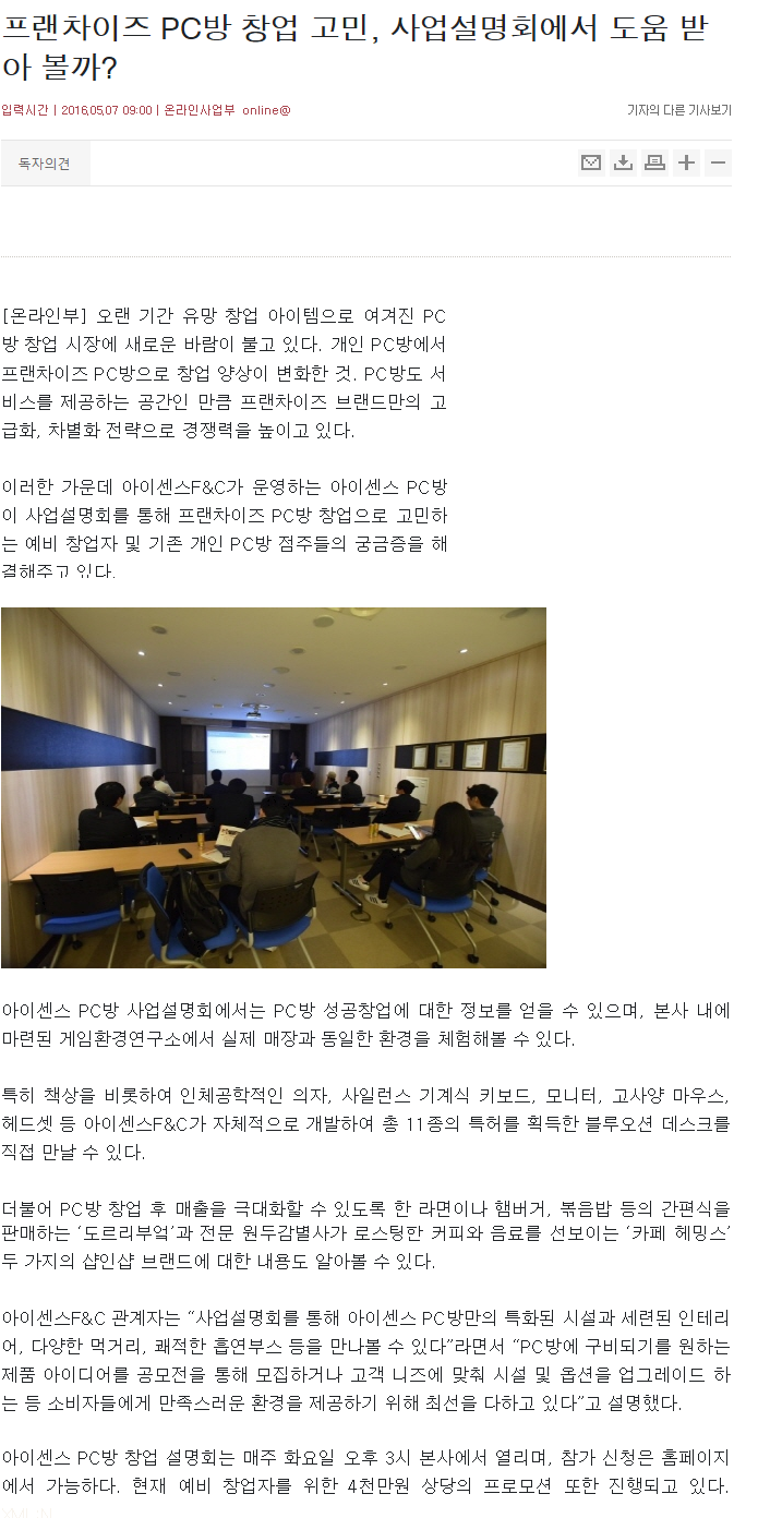 PC방창업 프랜차이즈 아이센스F&C, SNS 활용해 고객과의 소통 힘 써