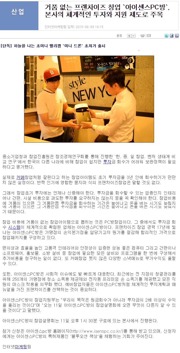거품 없는 프랜차이즈 창업 `아이센스PC방` 본사의 체계적인 투자와 지원 제도로 주목 디지털시대 경제신문 디지털타임스