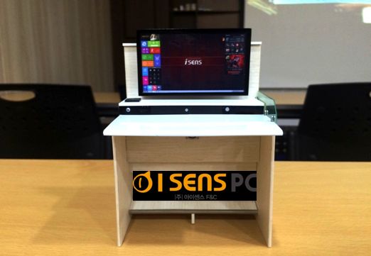 이번 사업설명회에 오신 분들을 위해 아이센스에서 특별히 제작한 블루오션데스크 모형입니다 . ‘블루오션데스크’ 는 아이센스PC방에서만 볼 수 있는 특허 받은 책상인데요 , 넓은 공간활용을 통해 PC방 먹거리 부가수익을 올려주며 장시간의 PC사용에 불편함이 없도록 제작되었습니다 사업설명회에 오신 예비 점주님들을 위해 소형으로 제작하여 블루오션데스크를 조금이나마 체험
